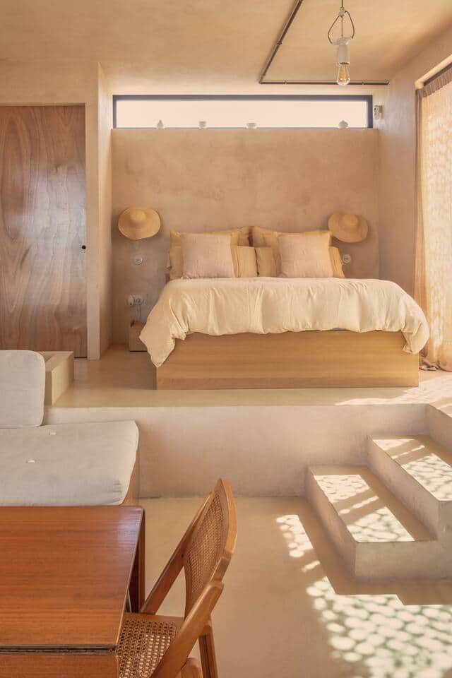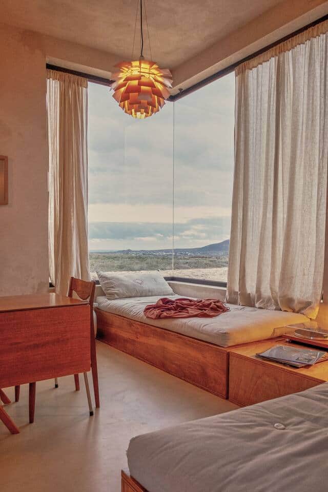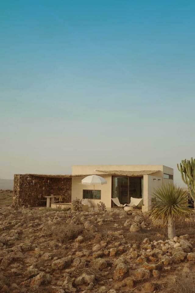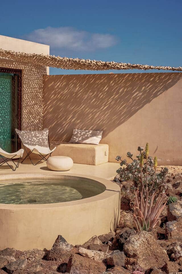 CASA GATTI, a design-led retreat in Fuerteventura, blends sophistication with simplicity. The interior, crafted using local materials, reflects a unique sense of harmony. The plunge pool offers panoramic views of Lanzarote and the region’s striking volcanic landscape.